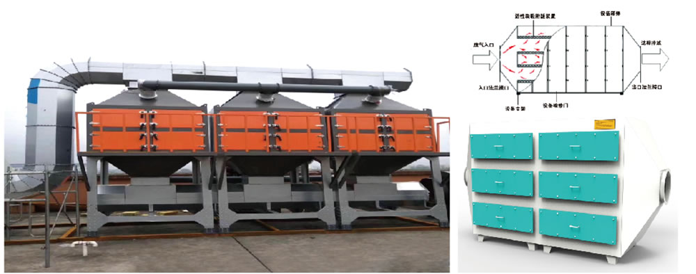有机废气净化方式颇多,如直接燃烧,催化燃烧,但其对于低浓度,大风量的废气很难完全燃烧,在间歇作业中余热不能 充分利用,对低浓度、大风量或间歇作业产生的废气釆用活性炭吸附法有其独特优点,废气净化装置应用活性炭吸附原理,和 吸附同类产品特点改进设计。本装置处理风量较大、釆用气动阀门,操作管理简单安全。