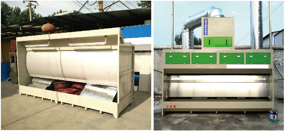 水帘柜借助风力作用提水形成水帘,无需水泵提水。避免了因水泵和管道堵塞、损坏引起的故障,大大提高了固体漆雾颗 粒的净除效果。其漆客处理方法科学有效,是一种技术较为先进的漆雾处理设备。